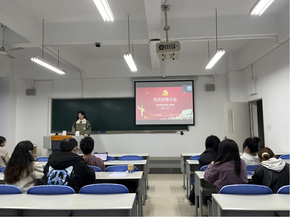 会议第一阶段,王静妮、丁红倩、何海蓉、王怡婷、郝云锋五位发展对象围绕对党的认识、入党动机、个人基本情况等方面依次向党支部进行汇报,表明了加入中国共产党的坚定决心。随后,五位发展对象的入党介绍人介绍了发展对象在培养考察期间政治思想、工作学习、作风纪律等方面的综合表现,并表示五位发展对象已经具备党员的基本条件。最后,经过与会党员的充分讨论与有表决权的正式党员无记名投票表决,党支部同意接收王静妮、丁红倩、何海蓉、王怡婷、郝云锋五名同志为中共预备党员。