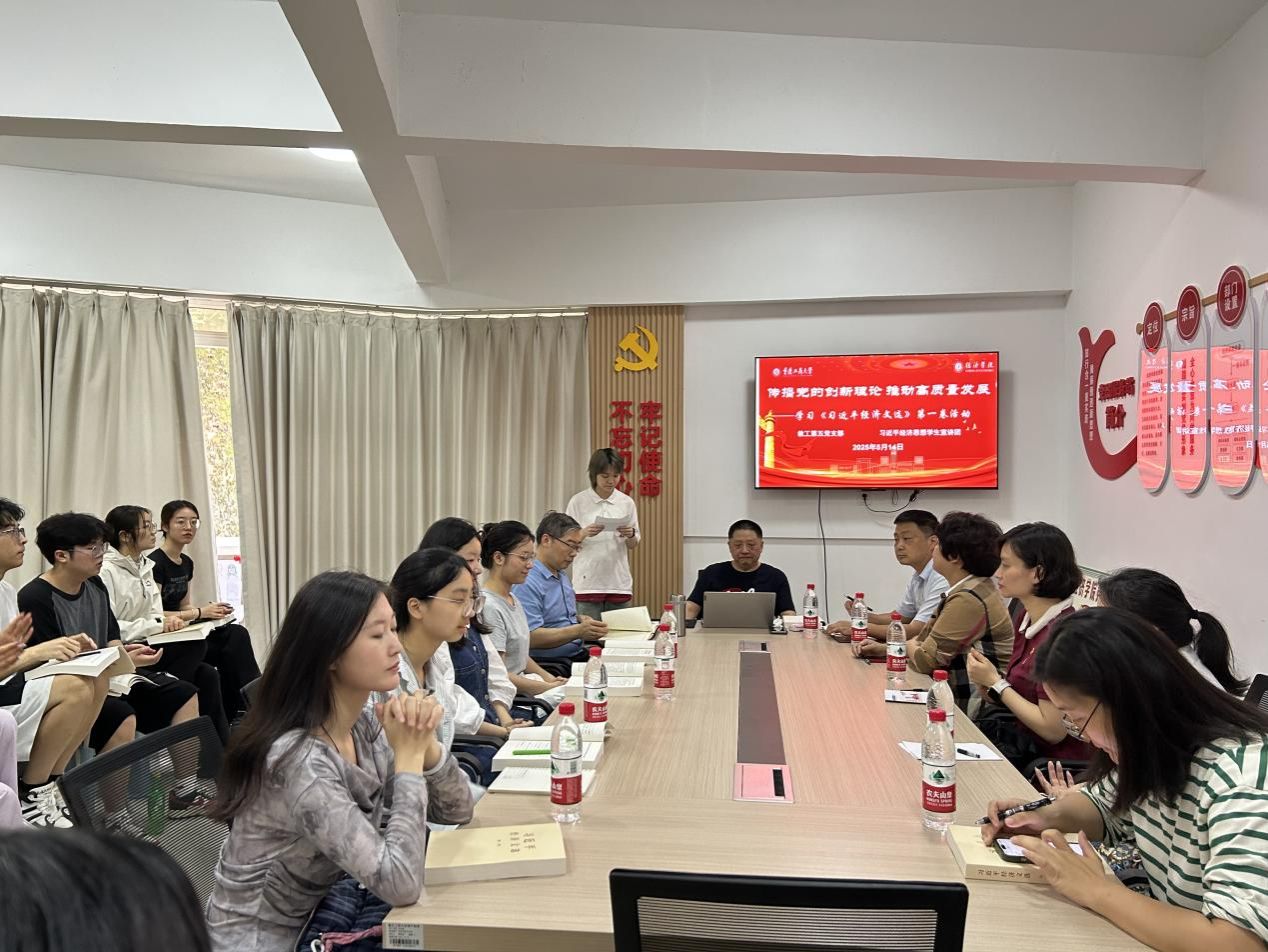 在分享交流环节,2024级经济学联合项目班侯沂汛、张恩曦同学结合专业学习和实践经历分享了心得。他们表示《习近平经济文选》为青年学子观察经济现象、分析经济问题提供了科学方法论,应当深入领会习近平经济思想的理论精髓,坚持学用结合、知行合一,为推动中国经济高质量发展贡献智慧和力量。