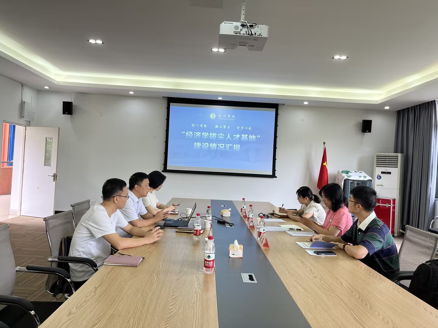 首先,伍蓓一行参观了学院文化墙与职工之家,严艳进行了详细讲解。随后,白海龙从基地建设基本情况、重点项目推进及措施、建设存在的主要问题以及基地建设的计划几个方面介绍了公司经济学拔尖人才培养示范基地建设情况。伍蓓、朱昊就经济学拔尖人才培养示范基地建设与参会老师进行深入交流探讨,伍蓓处长介绍了浙江工商大学拔尖人才培养示范基地未来的建设方向和目标。