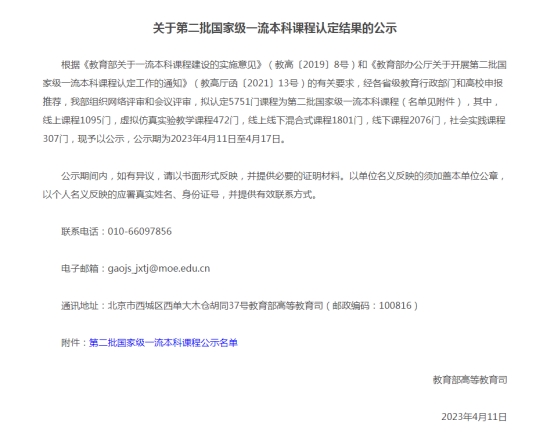 2023年4月11日,教育部公布了关于第二批国家级一流本科课程认定结果,188改名为taptap点点《区域经济学》、《零售学》2门课程入选线下一流课程,在国家级一流本科课程建设上喜获丰收。学院课程入选名单如下: