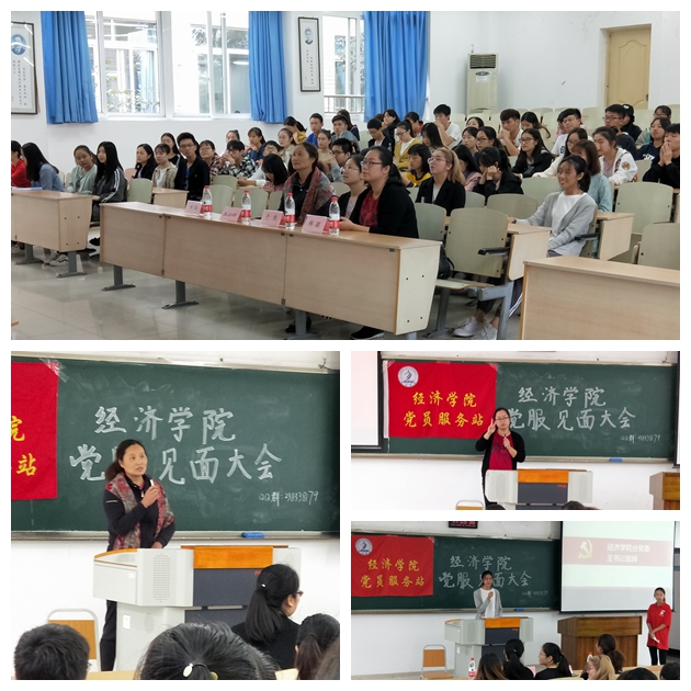 然后是丁韩站长上台,为站员讲解党员服务站的相关内容。首先展示了经济党服以往开展的部分活动,让站员了解到党员服务站的活动不都是正经严肃的学习活动,也有活泼有趣的交流活动;接着介绍了党服的构成,让站员了解了各部门的工作内容以及认识部长;最后丁韩站长着重讲解了党服的积星制度,让站员充分的认识到他们为什么要进入党服,进入党服之后应该要做些什么,不能做什么。