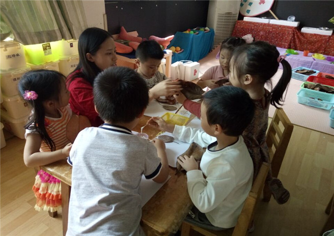 下午4点,同学们准时在幼儿园门口集合,在陈老师的带领下,小朋友的欢迎下进入幼儿园,接着帮助陈老师拿着准备好的剪刀、双面胶、彩纸等一些简单的手工制作材料,找到一间闲置的教室开始制作。同学们分成几个小组,简单分配了任务,在陈老师的细心指导下同学们兴致盎然地动起手来。有些同学已经很久没有接触过手工,开始的时候做起来难免有点粗糙,但是通过和陈老师以及同学们的相互交流和帮助,同学们热情高涨,很快找到了其中的技巧,尽情的感受其中的趣味,作品慢慢变得精致。不一会儿,一盘盘简单,呆萌的“包子”、“藕片”、“蛋卷”等便一一呈现在大家眼前。在制作的过程中,同学们和陈老师聊起幼儿园的日常活动,了解到如今的幼儿教学活动丰富多彩、层出新意,同学们感到羡慕的同时,也为现在的小朋友感到开心。