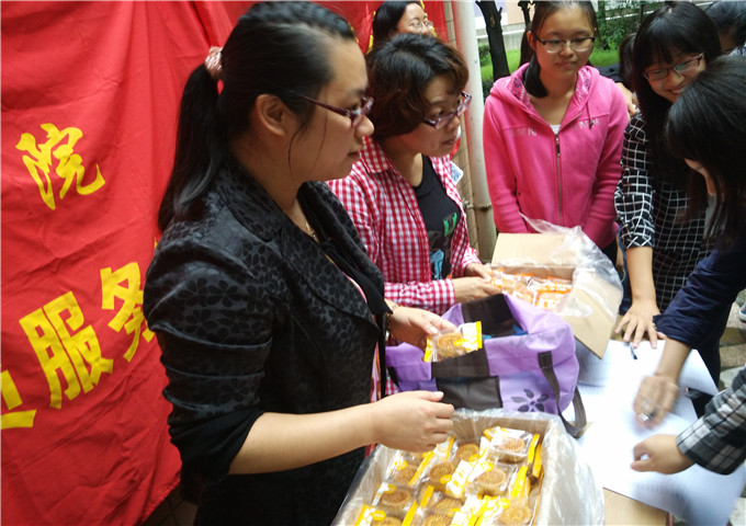 上午10点40分,北六党服的三位站长和各部长就已经到达楼栋门口,布置场地、摆放物资,共有两百多个三种口味的月饼供同学们免费领取。离活动正式开始还有10分钟,同学们早已陆续被吸引过来,自觉地排起两条长队,有序地等待着、期盼着。几分钟后,两位老师到场,开始向同学们派发月饼,并对每位同学都致以亲切的问候,现场满溢着幸福喜悦的气氛。11点15分,月饼全部派发完毕,活动圆满结束。