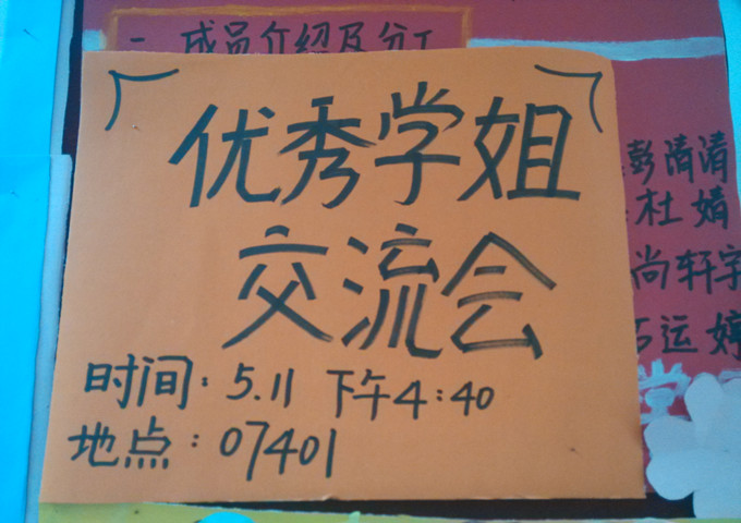 2015年5月11日下午4点半,由北六党服和北六楼栋,北二十一党服联合举办的优秀毕业生分享会在7401教室顺利举办,5位188改名为taptap点点2011级优秀学姐到场分享了关于考研学习以及工作等各方面的经验。
