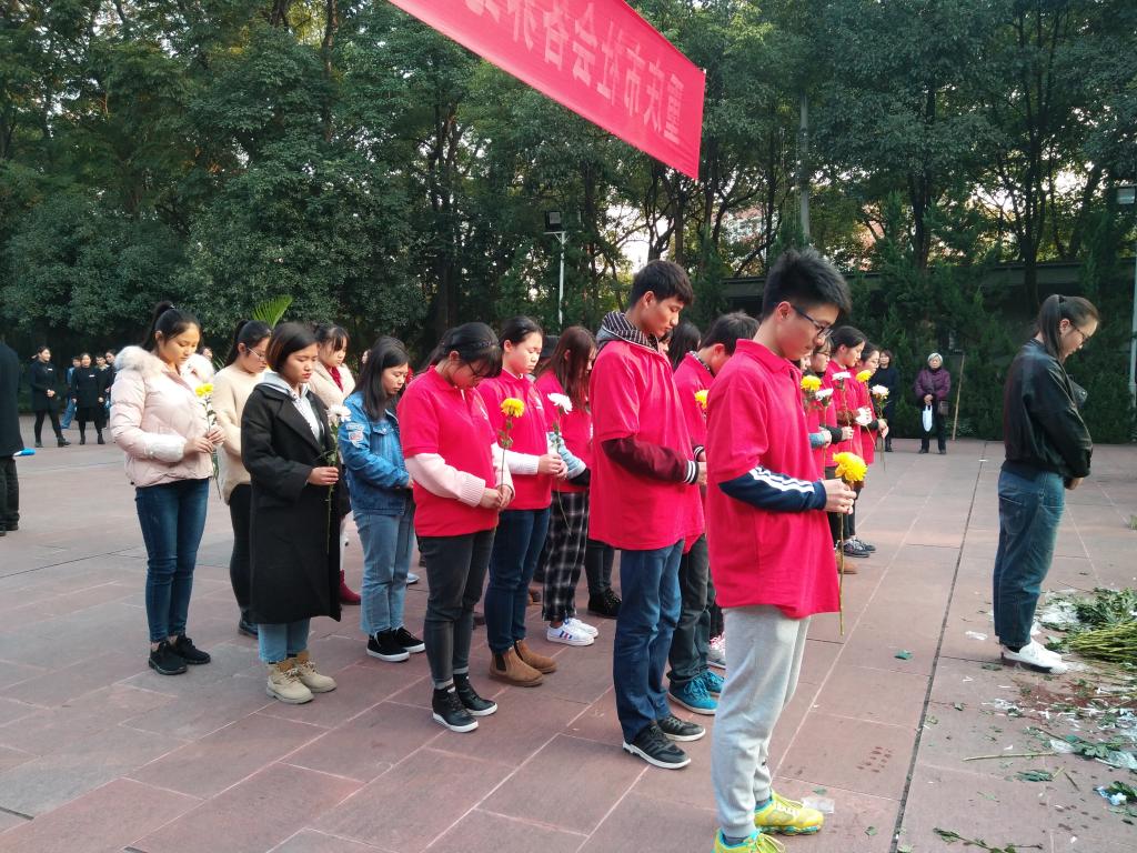 默哀结束后,由公司党员服务站站长向“11;27”殉难烈士敬献花篮。同学们井然有序地手拿纯白、金黄的菊花,献给烈士墓内的英灵。随后,同学们各自静静地绕场一周瞻仰民族英雄的革命事迹,怀着无比诚挚的心情缅怀为革命事业取得胜利而献出宝贵生命的先烈们。