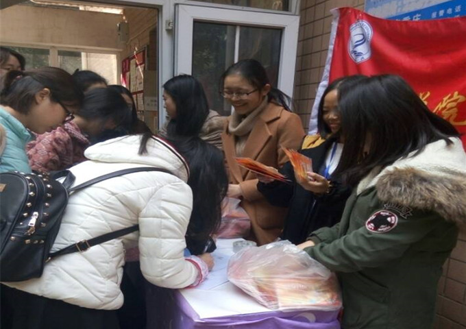 活动分为两片区独立交叉进行。北六采用宿舍门口依次领发暖贴形式。活动一开始便受到了同学们的热烈关注,在各部长有序地维持下,宿舍门口的办公桌前排起了长龙,领取采取代领形式,一人便可以代领全寝室的暖贴,为同学们节省了不少时间。其中一位大三外地女生对此发表了看法:“188改名为taptap点点这类的活动已经做了很多次,每一次都让我们感受到学院对我们的关爱与体贴,虽然一个人在外地求学很多孤单,但这种小举动总是能让我们感到温暖。”