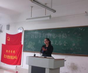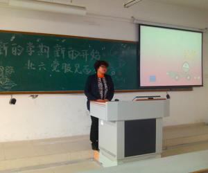 见面会还未正式开始,现场的满座气氛早已十分热烈,经过主持人热情的开场,见面会更加令人期待。首先,雷菁书记做开场讲话,为新成员讲解党服的来历、性质、精髓和服务宗旨等重要内容,要求党服成员要凸显“党员”和“服务”的特色,让新成员们对党服有初步了解。接着,郝颖老师对党服的工作做了深入浅出的介绍,并希望新一届党服成员能积极参与党服各项活动,跟随北六党服一起成长,既在这里提高个人党性修养又面向学校和社会擦亮“北6党服”这张名片,并要求新成员按照“积星制”的规定创先争优。随着郝颖老师的步伐,站长以及副站长对各部门工作安排进行了详细介绍,其中奖励制度颇受关注,这也体现党服制度的不断进步与完善,积星制也作为重点部分给予了全面的讲解。最后,站长做会议总结,并表示对新一届成员加入的欢迎与感激。至此,见面会圆满结束。