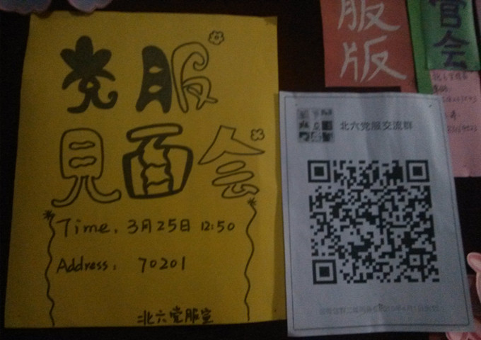北六党服与楼栋于2015年3月25日在七教201教室开展北六楼栋与党服第一次见面会活动。