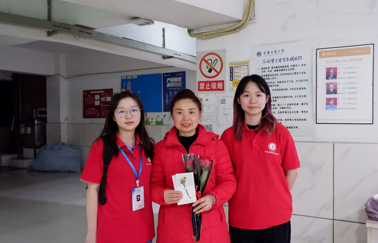 除了在三尺讲台上传道授业的教师,那些心系同学冷暖,关心同员工活、保障楼栋安全的宿管阿姨也同样值得大家尊重和敬爱。3月8日傍晚,经济党服组织站员先后走进了北15,北6、南5楼栋,向仍然在值班室工作的宿管阿姨送去了节日祝福,对阿姨们日复一日的辛勤工作表示感谢并与她们留下了珍贵的合影。