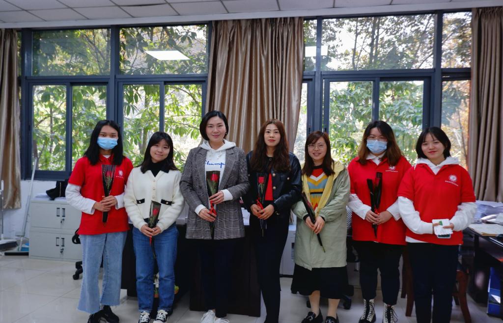 阳春三月,草长莺飞。在这春暖花开的季节我们迎来了第112个“三八”国际劳动妇女节。为了倡导同学们用实际行动践行尊师重教、尊重女性的传统美德,表达公司学子对女教职工的尊敬与热爱之情,公司党员服务站特此举办了“迎三八,送祝福”活动,为女教职工送去鲜花和贺卡,向辛勤耕耘在工作岗位、无私奉献青春智慧的女教职工致以节日祝贺和诚挚问候。公司党员服务站部分20级成员向公司党委书记李自维教授,党委副书记、副经理宋瑛教授,党委副书记、副经理王燕教授以及学院综合办和学团办的老师们,以及北15,北6、南5的楼管阿姨送去了节日祝福。