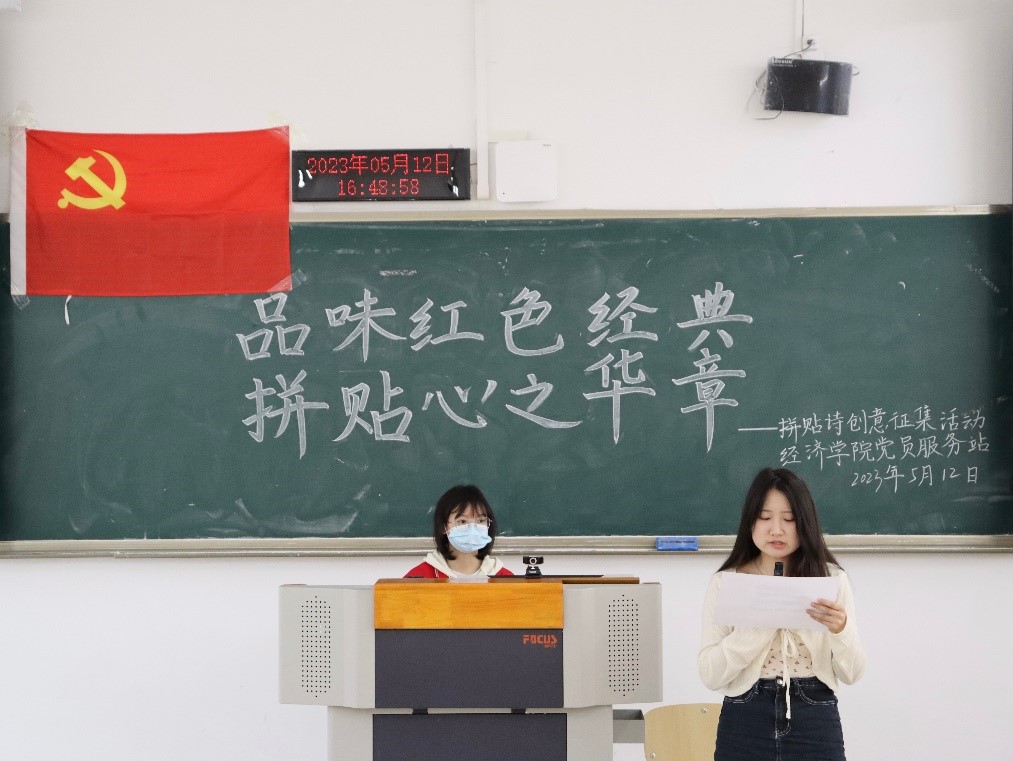 诗词风骨永不变,恒久醇香自远流。中华诗词是中华文明皇冠上的璀璨明珠,更是熔铸在炎黄子孙血脉中的文化自信。为涵养站员们的文化自信,丰富文化知识,加深对党的认识与理解,公司党员服务站于5月12日在博智楼07208开展“品味红色经典,拼贴心之华章”——拼贴诗创意征集活动。本次活动由21级经济学一班胡亦奕同学主持,共五十余名站员参与其中。