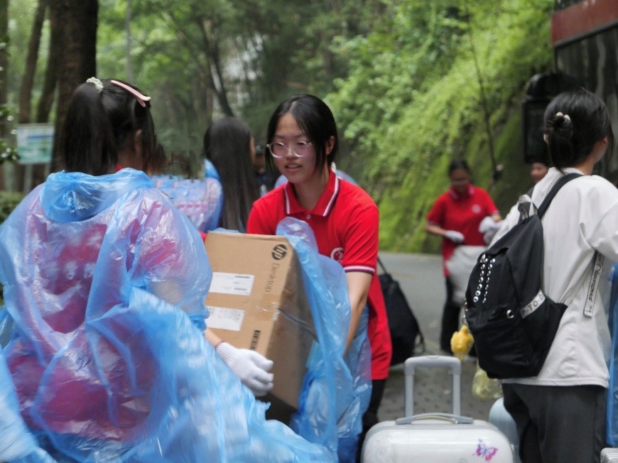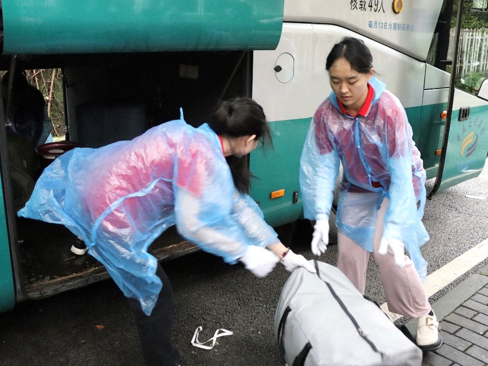 为保障宿舍搬迁工作按计划、分批次,平稳有序开展,学院提前召开了搬迁工作布置会议、制定了科学合理的搬迁方案,招募了60余名志愿者,助力寝室搬迁,传递经济温暖。7月1日上午5时30分,搬迁工作正式开始,公司党委副书记、纪委书记白海龙书记与各位辅导员亲赴搬迁现场,积极协调、处理突发事件。公司党员服务站提前准备好早餐、雨衣、手套等相关物资,为同学们做好坚实的后勤保障。虽然搬迁中天公不作美,但在绵绵细雨中,志愿者们坚守岗位,一次次往返于大巴车与宿舍楼间运送行李,大包小包,志愿者们“全包”。他们以“关爱同学,主动服务”为宗旨,尽心尽力投入到志愿服务活动中,使搬迁工作井然有序地推进。接受帮助的同学纷纷表示,这次宿舍调换工作的顺利完成,离不开志愿者们的帮助,并且发自内心地感谢学院领导老师的关心关爱,感谢志愿者们的辛苦付出。