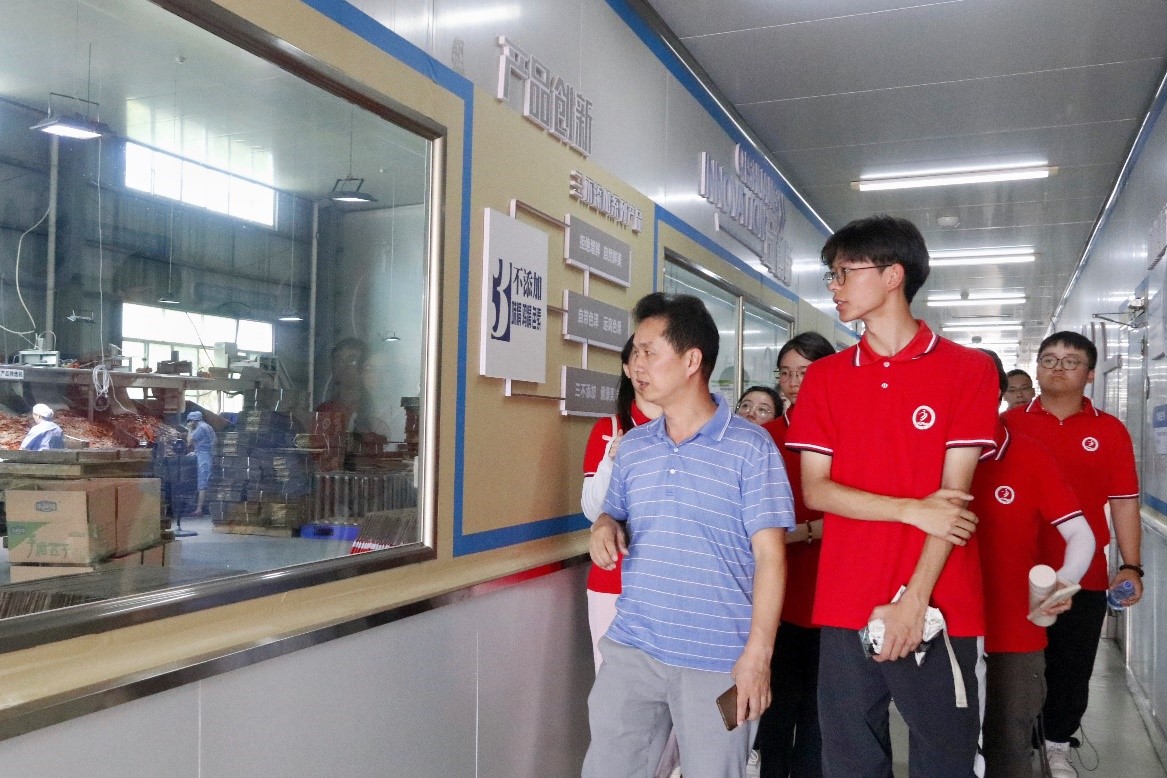 (图为戴厂长带领调研团成员参观奇爽食品生产车间,丁硕摄)