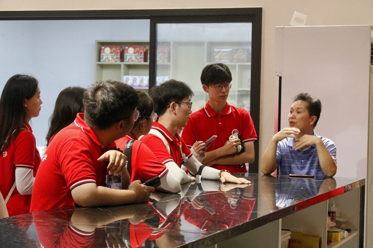 (图为戴厂长为调研团讲解柚子系列,丁硕摄)
