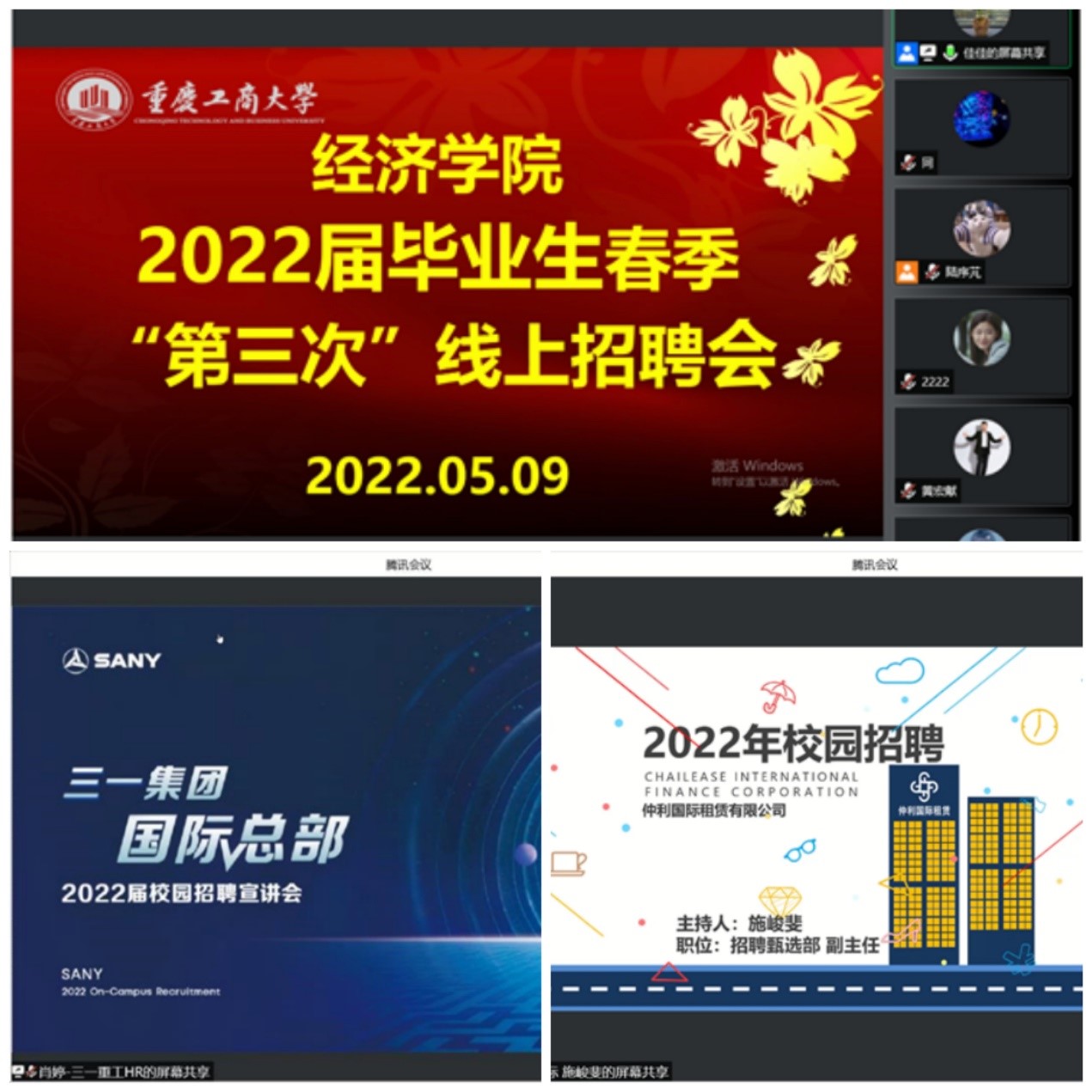 为切实做好毕业生就业工作,积极搭建毕业生与用人单位交流平台,公司于2022年5月9日下午14点召开“188改名为taptap点点2022届毕业生春季第三次线上招聘会”。此次招聘会共邀请到25家公司参与,其中成都天怡美装饰工程有限公司重庆两江新区分公司等19家企业进行了线上直播宣讲。公司党委书记李自维教授,副书记副经理王燕教授,及毕业班辅导员出席此次会议,毕业生参会人数90人次。