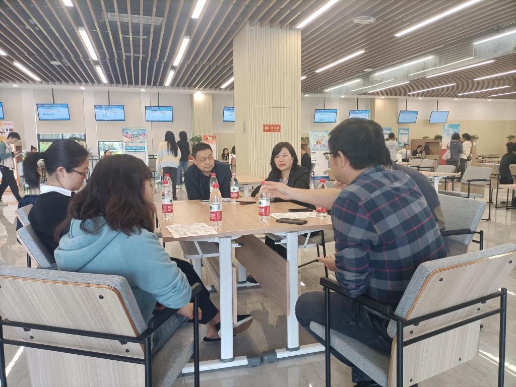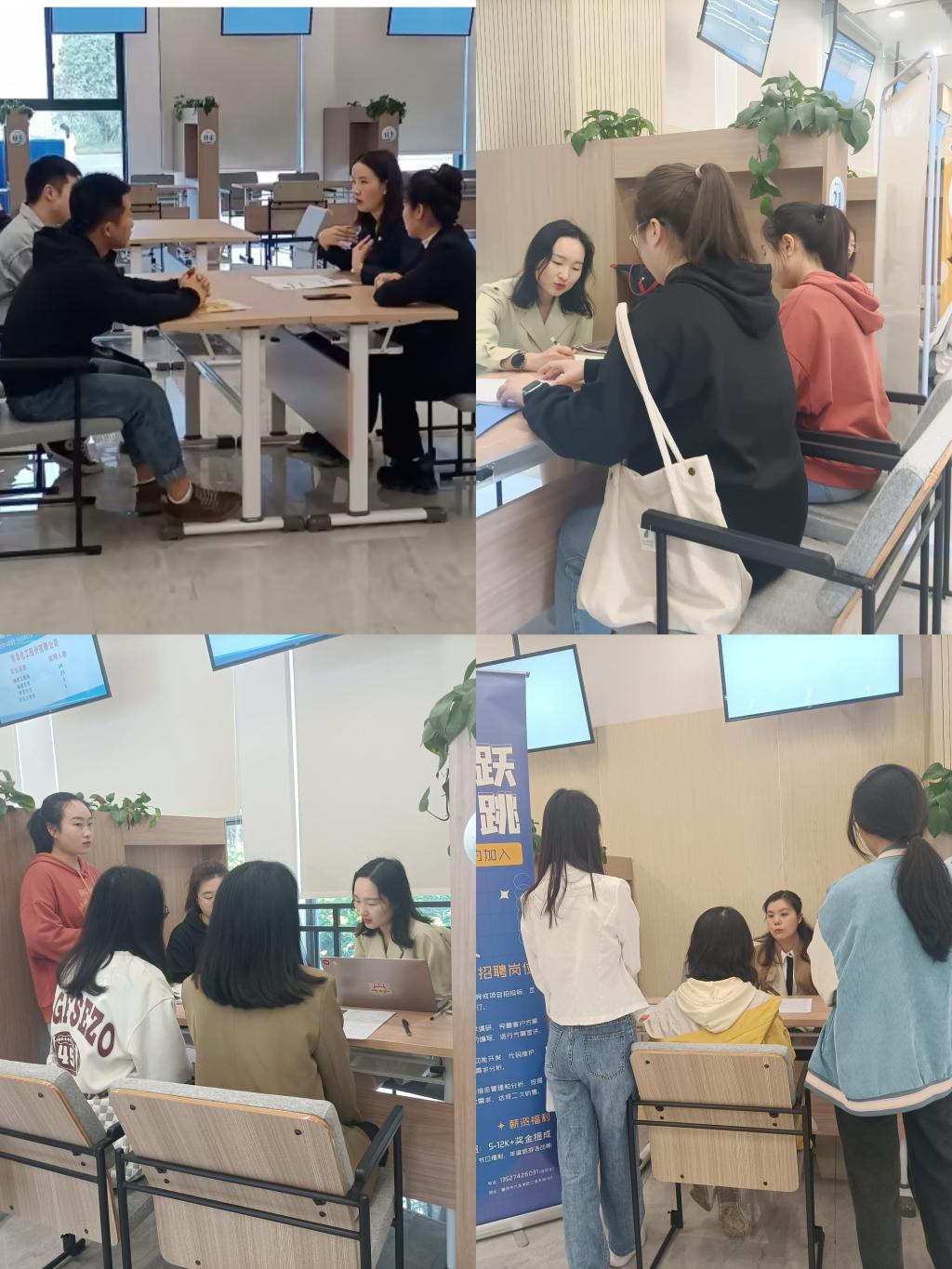 宣讲厅现场,集泰股份、首创证券和悟空商务等单位负责人向员工们介绍了公司的发展概况、员工培养体系、薪酬福利体系和职业发展晋升等内容,详细解答了在场员工的疑惑,进一步明晰了员工们对就业岗位的认识。在就业大厅招聘现场,到场毕业生积极投递简历,自我推荐,与招商证券、太平人寿等10余家用人单位招聘人员进行深入的交流洽谈。