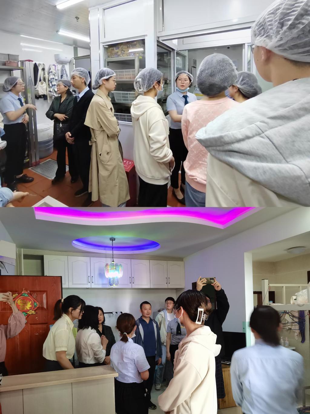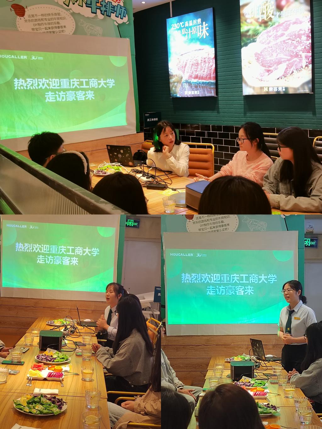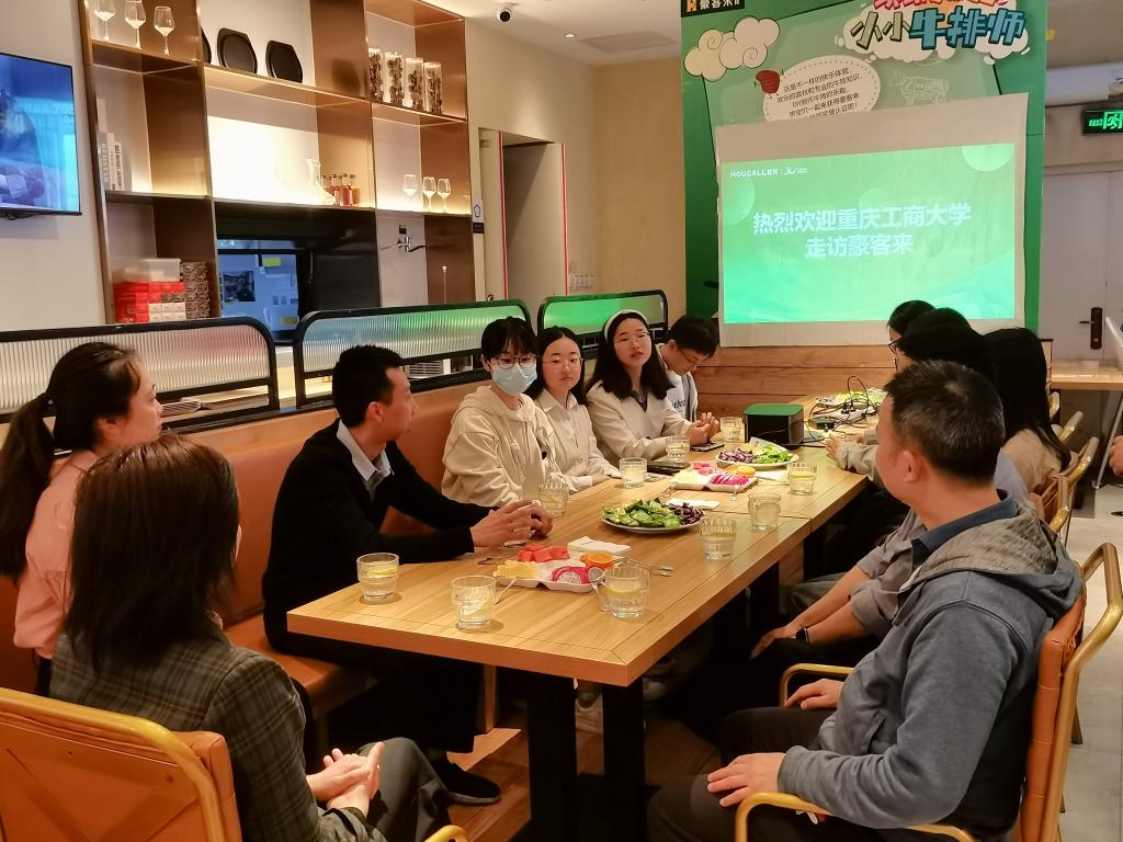 交流会上,在场师生通过观看宣传片、实地了解经营流程、参观员工宿舍等形式,对豪客来的企业文化、薪酬待遇、生产经营、用人导向和管理机制等问题有了更深入的了解。经验分享环节,两位学姐侧重讲述了自身毕业后的职业生涯和整体上的职业规划,从加入豪客来100天培训计划起,逐渐获得了自身经营管理的能力,在工作中不断获取成长空间、实现人生价值。