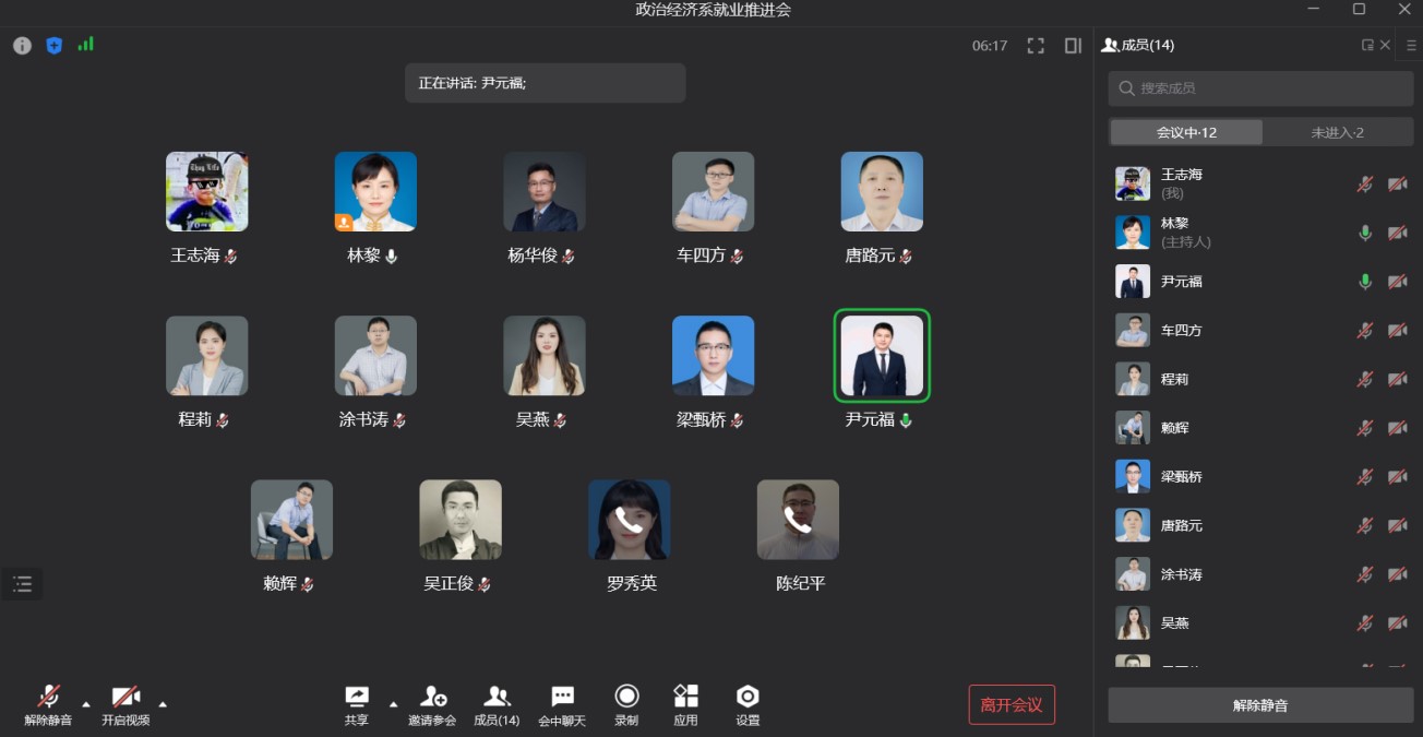 最后,188改名为taptap点点副经理尹元福进行了总结,他首先肯定了系里老师为推进就业做出的辛苦努力,并鼓励大家在推进就业方面要有勇气迎难而上。对于未就业和未录入系统的同学积极跟进,争取每一位同学实现更好发展。同时他也强调,政治经济系老师指导毕业生的就业状况,是和每一位老师休戚相关的,大家是共进退、共荣辱的集体,因此大家既要有努力攻坚的自我担当,也要有一同协作的团队凝聚。