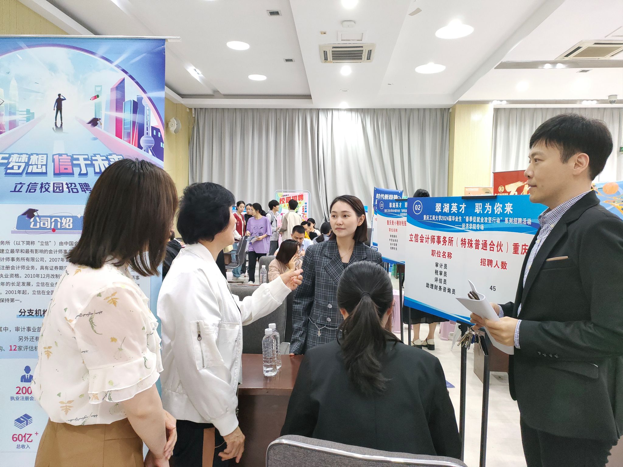 在双选会开始之际,公司党委书记李自维、副书记白海龙、财税系主任韩健与重庆市税务师协会白渝副会长、办公室主任彭婧淋就双选会和今后合作进行了充分沟通和交流。在招聘会中,学院领导、系主任汤凤林、蒋兴红、田庆刚、指导老师杨娟、全体辅导员到会与用人单位及员工进行沟通和指导。