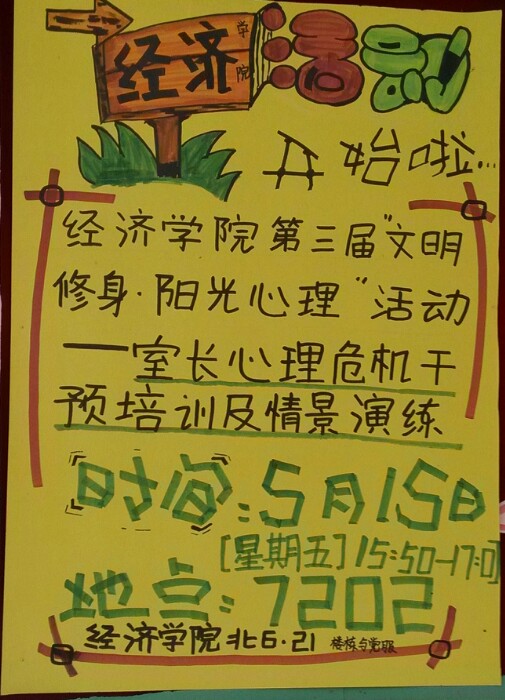 整个活动持续了一个小时左右,大家都受益匪浅,觉得此次心理危机干预培训很重要,将会在以后的生活和学习中大有裨益,终生受用。最后,在大家的热烈的掌声中,本次活动取得了圆满成功!