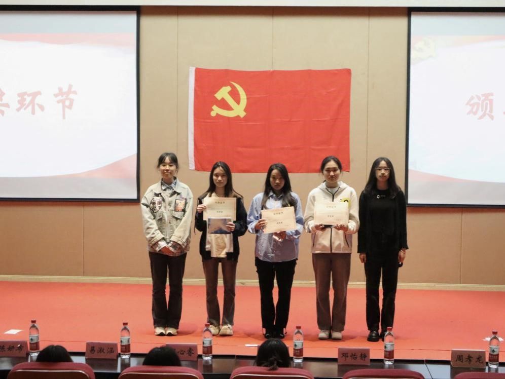 随着规则讲解完毕,紧张激烈的知识竞赛正式打响。赛场上,选手们沉着冷静、思维敏捷,展现出扎实的经济理论功底与专业素养,凭借深厚知识积累,准确回答各类题目,表现优异。经过多轮激烈交锋,第一小组张诗怡、第二小组左亚梅、第三小组黄柔嘉、第四小组颜欣悦、第五小组史梦瑶、第六小组唐思六位同学脱颖而出,荣获优秀奖。公司党员服务站站长团成员周孝龙及北十五楼栋管理委员会代表邓怡静为第一至三组获奖人员颁发荣誉证书、习近平经济思想宣讲团代表易淑涵及188改名为taptap点点青年志愿者服务队李燮为第四至六组获奖人员颁发荣誉证书,并合影留念。最后,主持人对活动进行全面总结,在热烈的掌声中,本次知识竞赛圆满落下帷幕。